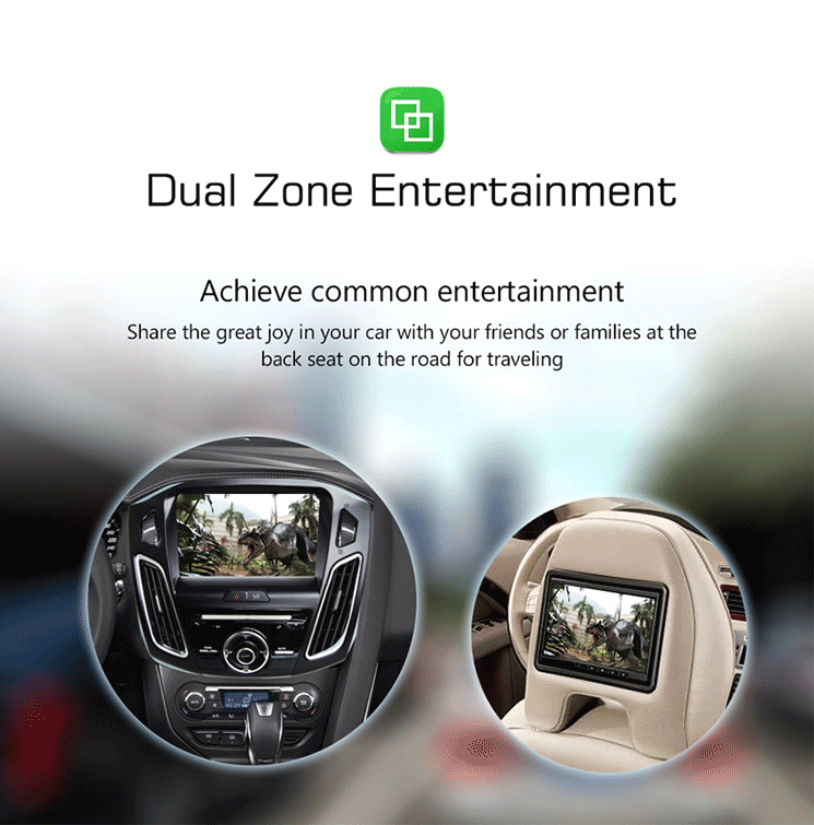 - מערכת תומכת Dual-zone להפעלת והצגה של תוכן במסכים אחוריים