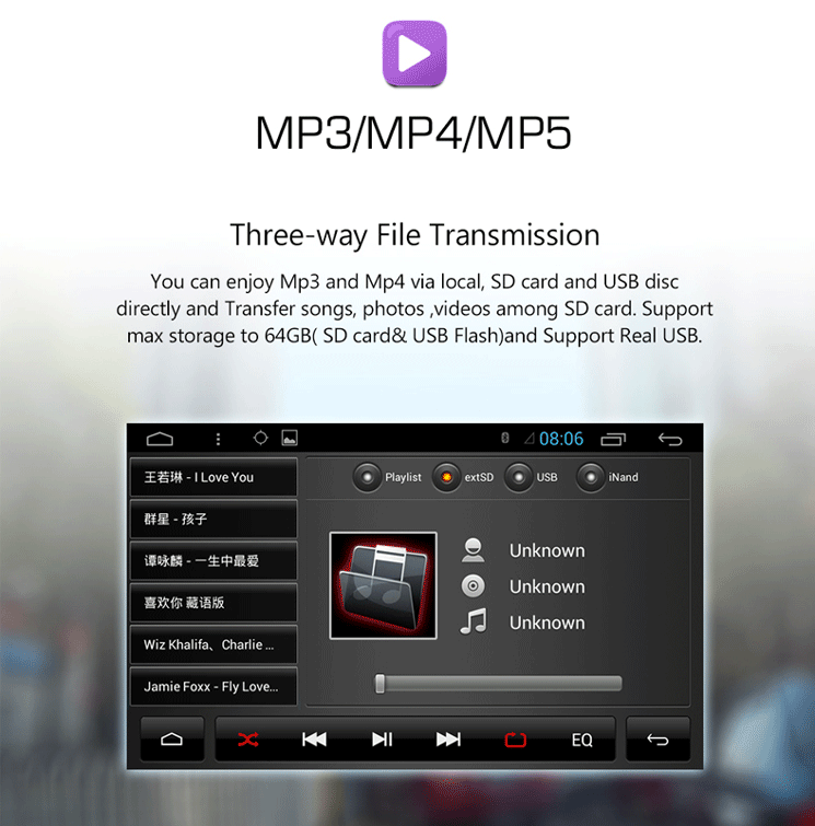- תמיכה במגוון גדול של קבצים לרבות Mp3 / DVD / CD / DIVX / Jpeg ועוד הרבה